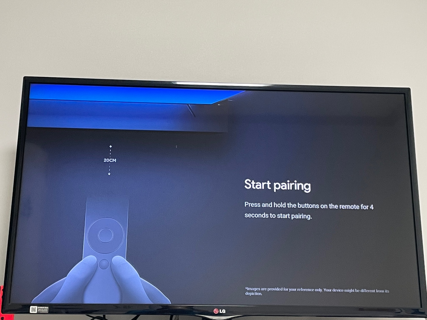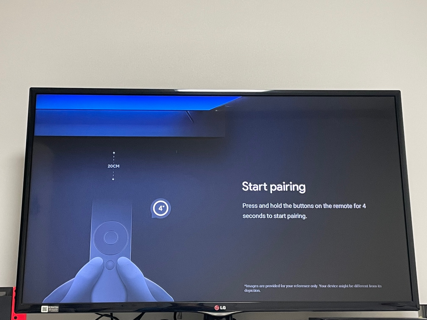 페어링을 시작하기 위해(Start pairing) 샤오미 리모컨에 버튼을 화면과 같이 4초간 누른다.