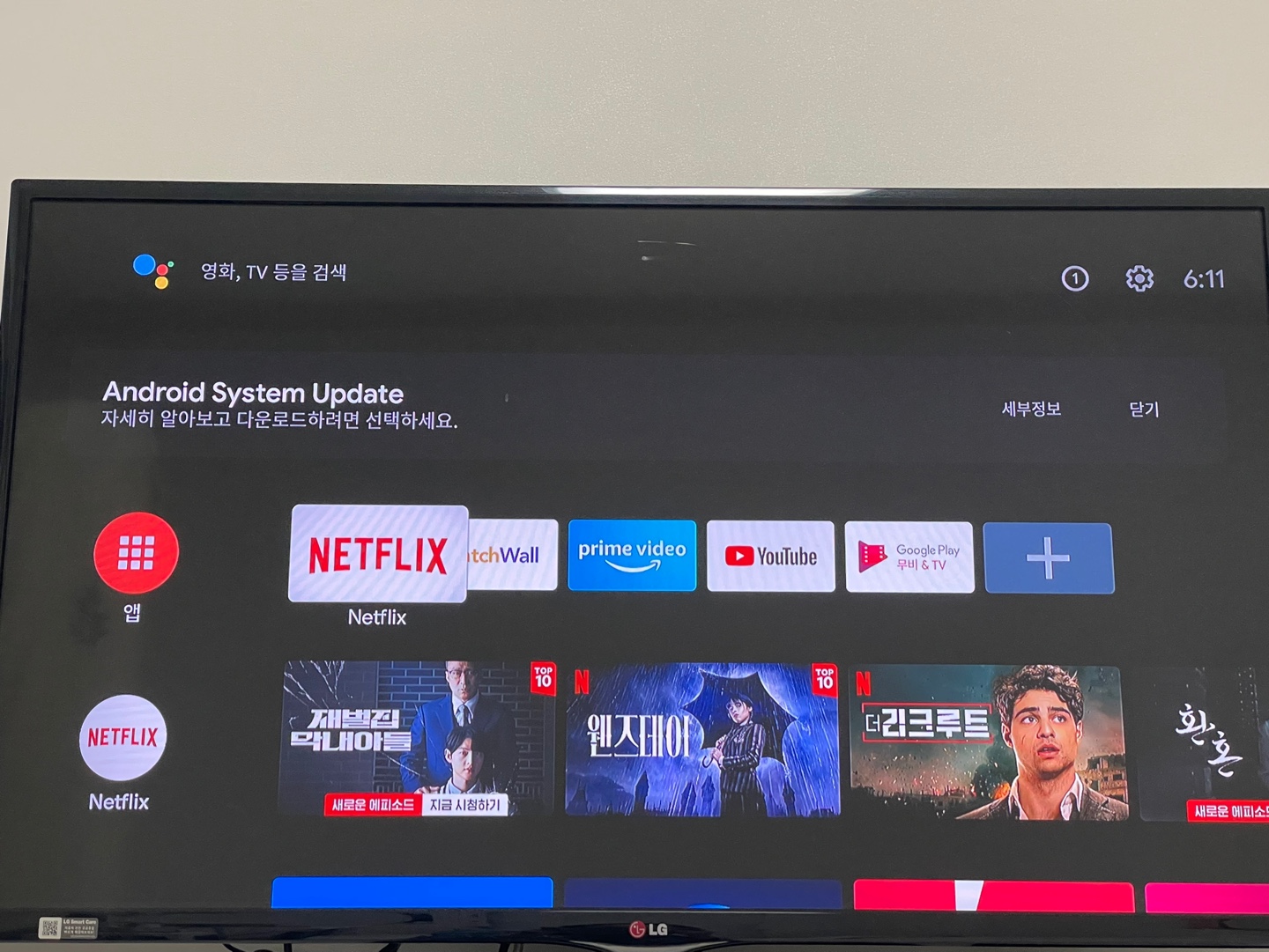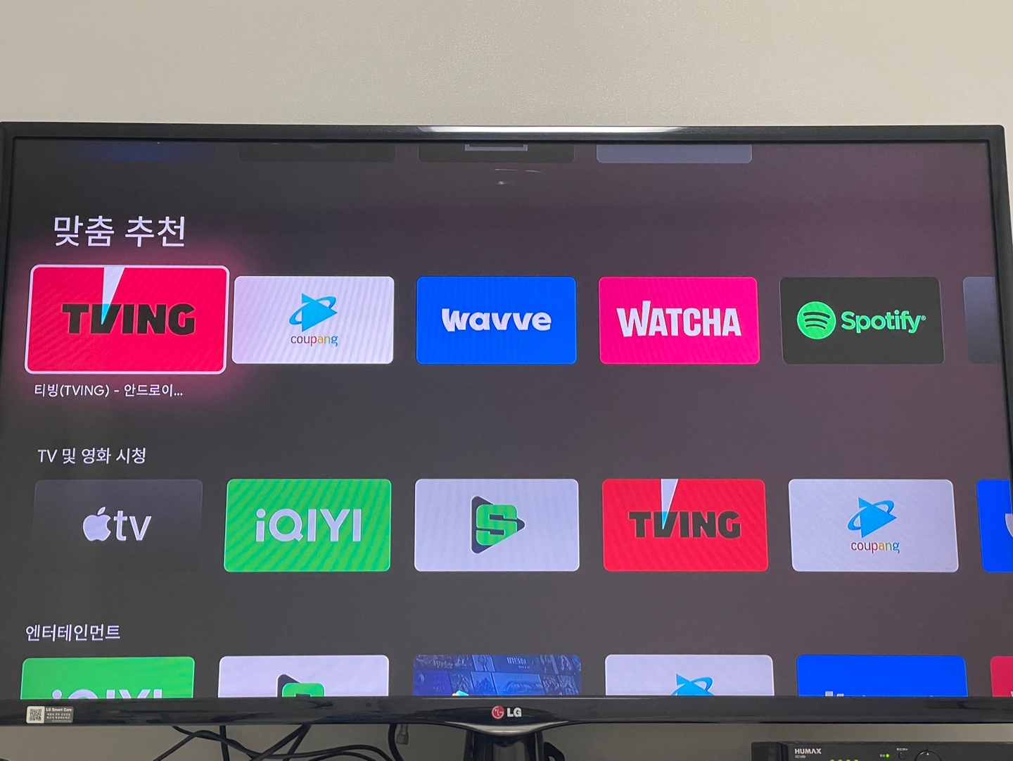 또한 기본 내장된 어플로 유튜브, 넷플릭스 등이 설치되어 있어 개인 계정만 있다면 바로 시청가능하며, 그 외 티빙, 웨이브, 와챠, 쿠팡플레이, 디즈니 등은 어플을 설치하면 언제든 사용가능하다.