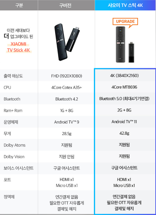 2. 샤오미 TV스틱 FHD와 4K 차이점