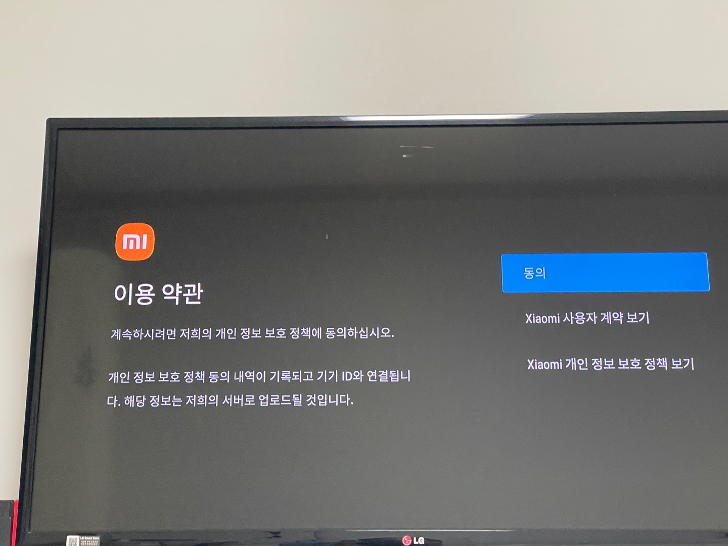 샤오미 TV스틱 MiTV Ayfro TV제어를 하기 위한 리모컨 조작법과 이용약관까지 완료하면