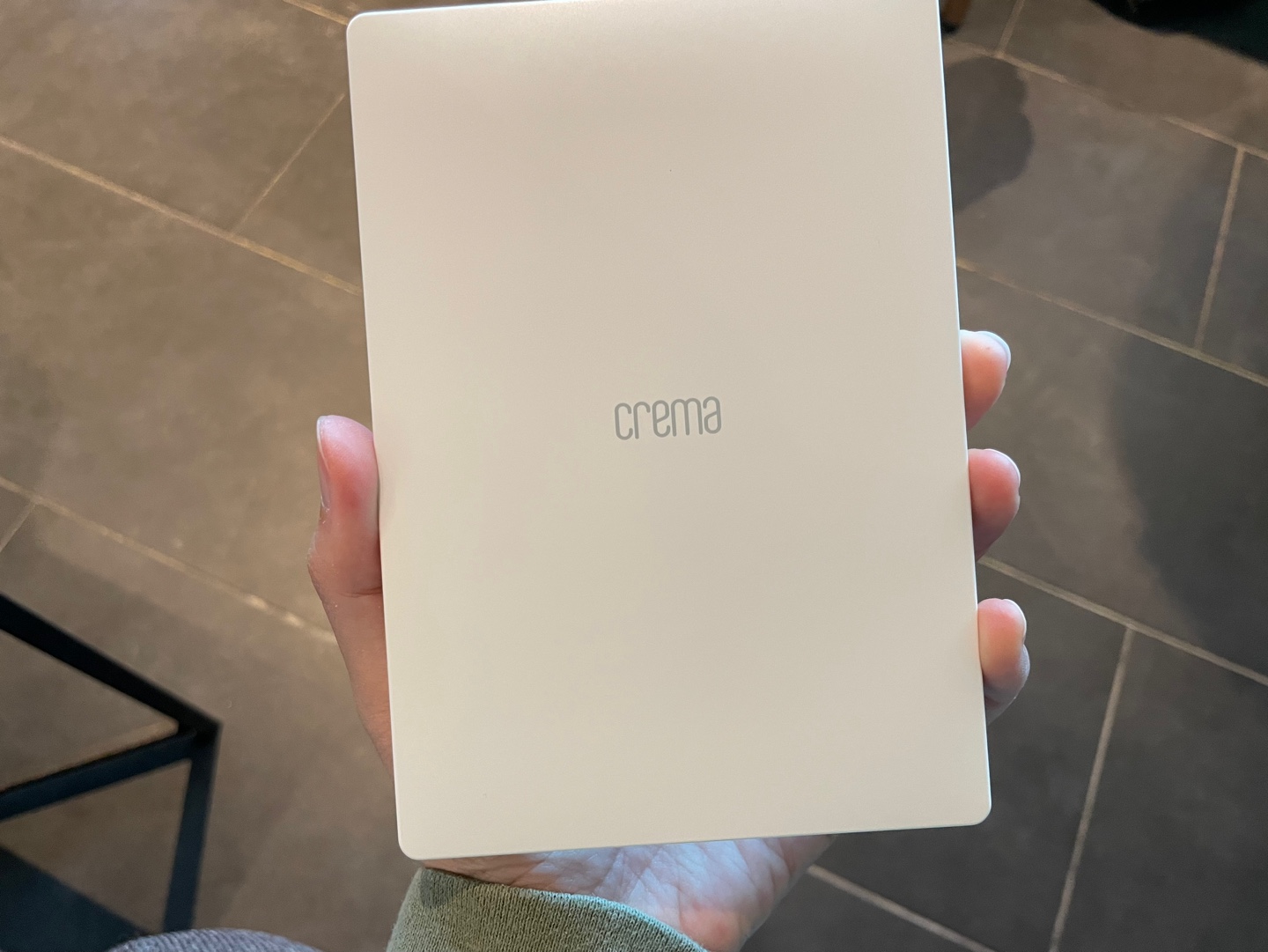 여기서부턴 선물 받은 후 이북리더기 크레마S 개봉하는 사진들이다. yes24 서점에서 오프라인으로 구매를 하였다고 한다. 구매시 보호필름과 젤리 케이스도 함께 구매하여 선물 받았다. 패키지 케이스도 한손에 잡힌다. 열기전부터 큰 기대감을 가지고 개봉하였다.
